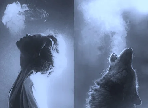 The wolf signifies the powerful trait of "instinct, intelligence, and an appetite for and awareness of the importance of social connections". A strong connection with instruct can guide you to a way of "perceiving and understanding the world around you that works similarly. When a wolf manifests its presence as a guide in your life, it could be a call to live your life more freely, to bring the intensity of passion in your everyday endeavors". The howling reflects having a predatory feeling of vulnerability. "Howling" gives you a change to look at what is influencing your mind and how that is shaping the way you are living. Nomad, meaning "a member of a people having no permanent abode, and who travel from place to place to find fresh pasture for their livestock. or a person who does not stay long in the same place; a wanderer". Rather than a nomad looking for food, you're looking for food for the mind.